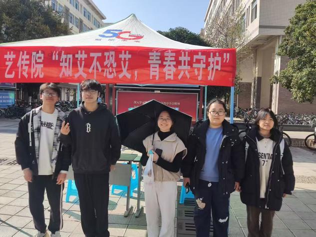 艺术与传媒学院青年志愿者协会举办的“知艾不恐艾,青春共守护”主题志愿活动,于2025年12月7日中午12点在怡园小广场展开。