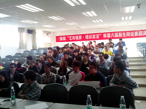 2014年11月9日,我院在多媒体422教室举办了第六届“艺传视界·博识奕言”杯新生辩论赛半决赛。本次辩论赛分为两场,第一场为环设142班(正方)对新闻141班(反方),第二场为工设141班(正方)对环设141班(反方)。
