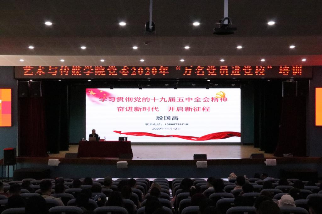 2020年11月12日,我校党校常务副校长殷国禹教授来艺术与传媒学院以“奋进新时代,开启新征程”宣讲党的十九届五中全会精神,学院全体师生党员认真聆听了宣讲会。