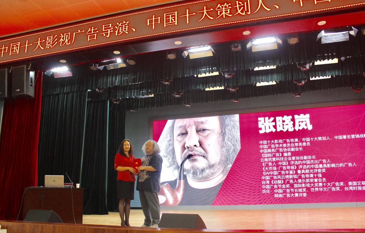 张晓岚先生是中国影视广告导演、中国十大策划人、中国著名营销战略专家、中国广告学术委员会常务委员、中国商务广告协会副会长、《国际广告》编委、云南民营科技企业家协会副会长、《广告人?中国》评选的中国杰出广告人、《大市场?广告导报》评选的中国最具影响力的广告人、《IAI中国广告年鉴》最具眼光评委奖、中国广告风云榜新锐广告导演十强、台湾《动脑》广告人俱乐部荣誉会员、中国广告节金奖、国际影视大奖赛十大广告奖、美国艾菲奖、中国元素奖。历任:中国广告节长城奖、世界华文广告奖、台湾时报金犊奖、中国首届网络广告大赛评委。2017年5月9日下午,艺术与传媒学院邀请张晓岚先生在小剧场给学生传授创意方法,学院部分老师,视觉传达设计、数字媒体艺术、广告学、编辑出版学等四个专业的学生以及设计学研究生共300人聆听了讲座。