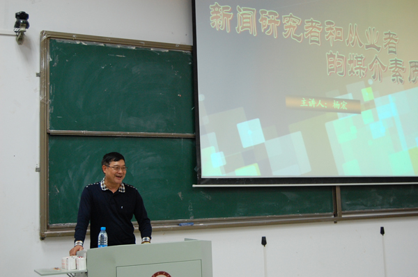 聘任仪式结束后,杨宏秘书长为艺术与传媒学院师生做题为“新闻研究者与从业者的媒介素质”的学术讲座。杨秘书长首先以自己的亲身经历介绍了在全球化背景下,我国的新闻传播和宣传方式发生的巨大变化;接着结合一个个的具体案例分析了当前我国的广播电视存在的问题;最后重点讲了在新形势下,新闻研究者和从业者应努力提高的政治素质和媒介素质。杨秘书长还现场回答了同学们提出的问题,并嘱咐同学们要好好学习,学好本领,为发展我国和云南的广播电视事业做贡献。